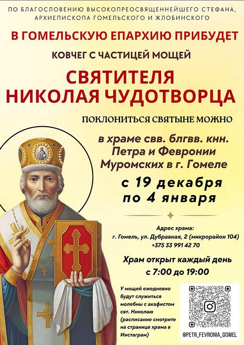 19 декабря в Гомельскую епархию прибудет ковчег с частицей мощей Святителя Николая Чудотворца