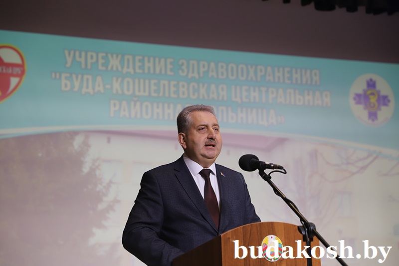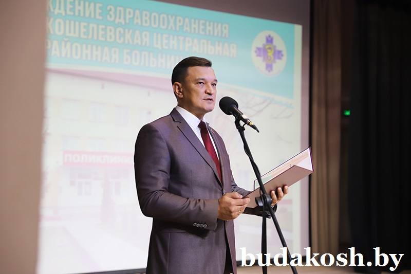 Председатель райисполкома Валентин Ундруль вручил приветственный адрес и сетификат на укрепление материально-технической базы учреждения главному врачу центральной районной больницы Станиславу Крылатову. В привественном адресе говорится: «Уважаемые медицинские работники, ветераны здравоохранения и все, кто посвятил себя благородному делу сохранения здоровья жителей нашего района, от имени районного исполнительного комитета, районного Совета депутатов поздравляем вас со знаменательной датой – 140-летием системы здравоохранения нашего района! Это не просто юбилей, это история самоотверженного труда, милосердия и профессионализма многих поколений врачей, медсестер, фельдшеров и всех, кто каждый день стоит на страже жизни и здоровья людей. За эти годы здравоохранение района прошло огромный путь – от первых фельдшерских пунктов до современной больницы, оснащенной передовыми технологиями. Но самое главное – это люди, которые своим трудом, знаниями и душевной теплотой помогают пациентам в самые трудные моменты. Ваша благородная профессия посвящена служению людям и заслуженно считается одной из самых важных и почетных. Работа в медицинской сфере требует высокой компетентности, преданности избранному делу, терпения и милосердия. Вы вносите большой личный вклад в развитие системы здравоохранения Буда-Кошелевского района, в сохранение лучших традиций отечественной медицины».