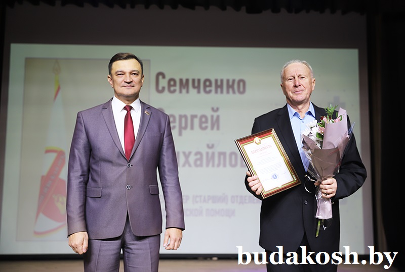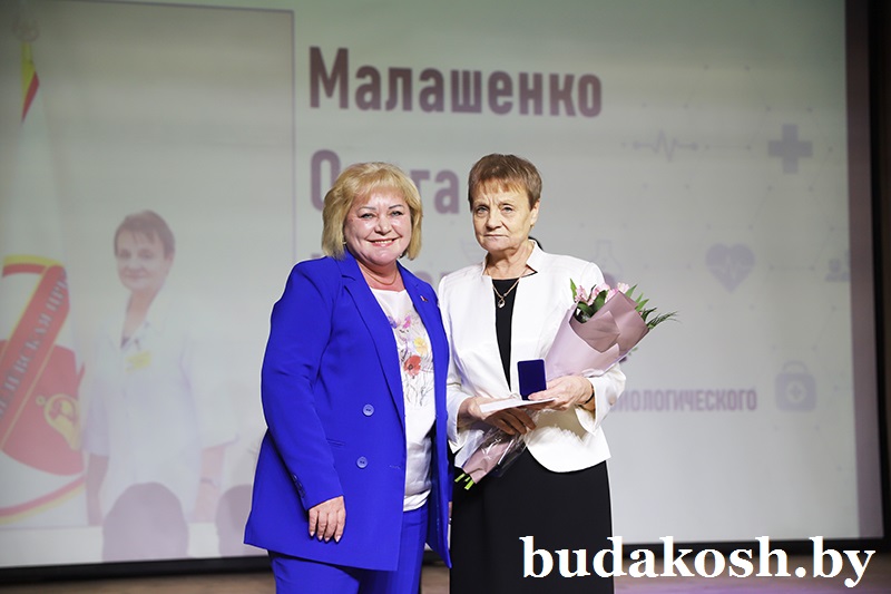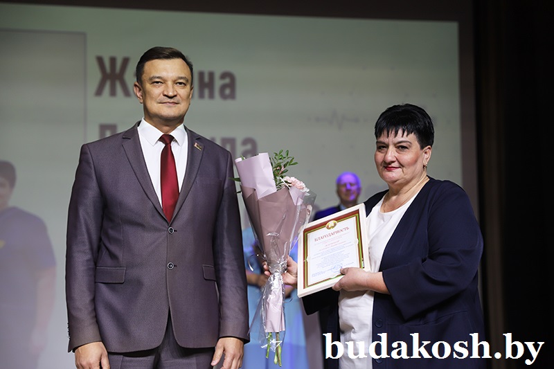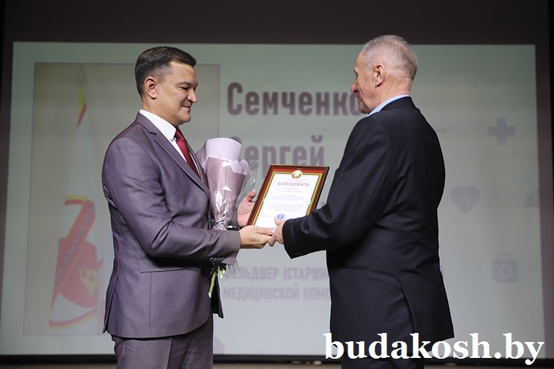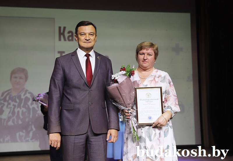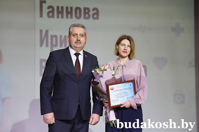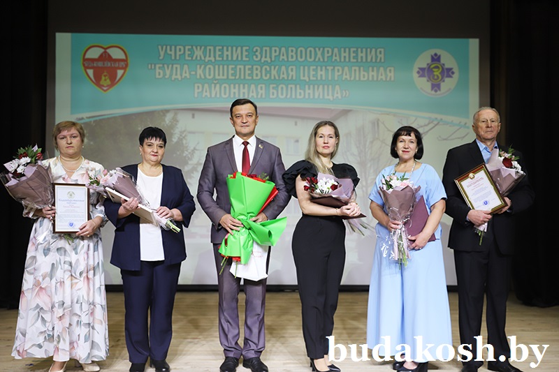Станислав Крылатов поблагодарил коллектив, ветеранов отрасли за преданность профессии и вручил грамоты учреждения здравоохранения «Буда-Кошелевская центральная районная больница» фельдшеру выездной бригады скорой медицинской помощи Елене Зековой, медицинской сестре терапевтического отделения Уваровичской участковой больницы Елене Репченко, фельдшеру-лаборанту клинико-диагностической лаборатории Наталье Меранковой, медицинской сестре инфекционного боксированного отделения Нине Гавриченко, медицинской сестре общей практики отделения врача общей практики районной поликлиники Наталье Музыченко, ведущему инженеру по охране труда Людмиле Мутаковой, медицинской сестре отделения дневного пребывания Елене Шпарун, рентгенолаборанту рентгеновского кабинета Зое Некрашевич, медицинской сестре группы регистра Галине Спасибовой, медицинской сестре терапевтического отделения Валентине Жаранковой, медицинской сестре операционной хирургического отделения Елене Авраменко, медицинской сестре отделения анестезиологии и реанимации Жанне Семченко.