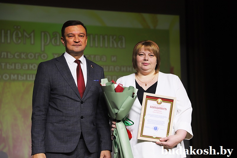 Почетной грамотой районного исполнительного комитета награждена заместитель начальника управления сельского хозяйства и продовольствия райисполкома Наталья Мацудова. Благодарности районного исполнительного комитета объявлены: главному специалисту отдела механизации и растениеводства управления сельского хозяйства и продовольствия райисполкома Артему Кучерову, главному специалисту отдела экономики управления сельского хозяйства и продовольствия райисполкома Алесе Кириленко, оператору животноводческих комплексов и механизированных ферм ОАО «Николаевка» Сергею Минову, животноводу филиала ОАО «Гомсельмаш» «Юбилейный-Агро» Ивану Козлову, трактористу-машинисту сельскохозяйственного производства СУП «Андреевка» Николаю Михневичу, слесарю-ремонтнику ОАО «Буда-Кошелево-агросервис» Ивану Коритько, трактористу-машинисту сельскохозяйственного производства КСУП «Губичи» Владимиру Дегтяренко, трактористу-машинисту сельскохозяйственного производства СУП «Морозовичи-Агро» Игорю Парфененко.