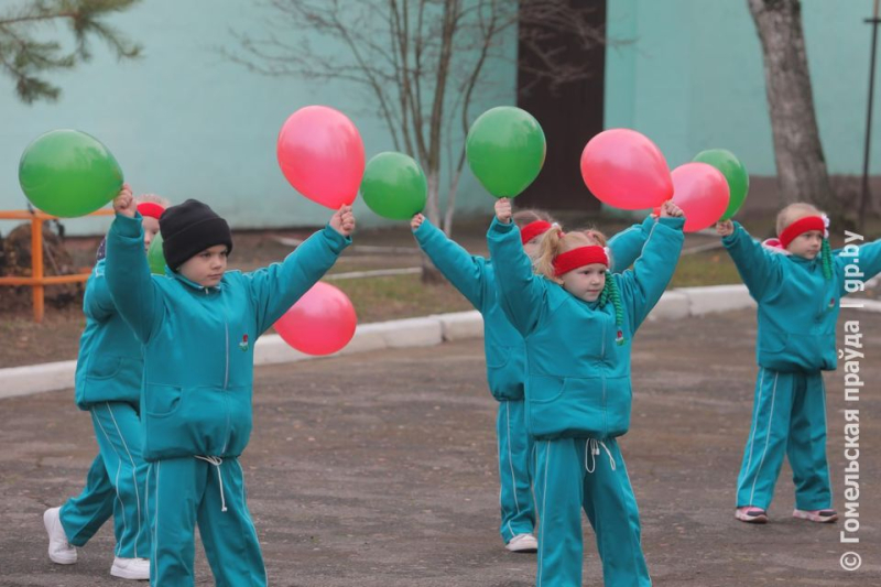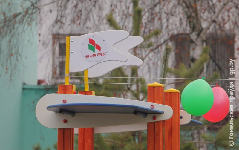 При поддержке «Белой Руси» в дошкольном центре развития ребенка Буда-Кошелева появился современный игровой комплекс, а первоклассники городских школ получили патриотические раскраски «Дети рисуют Родину».