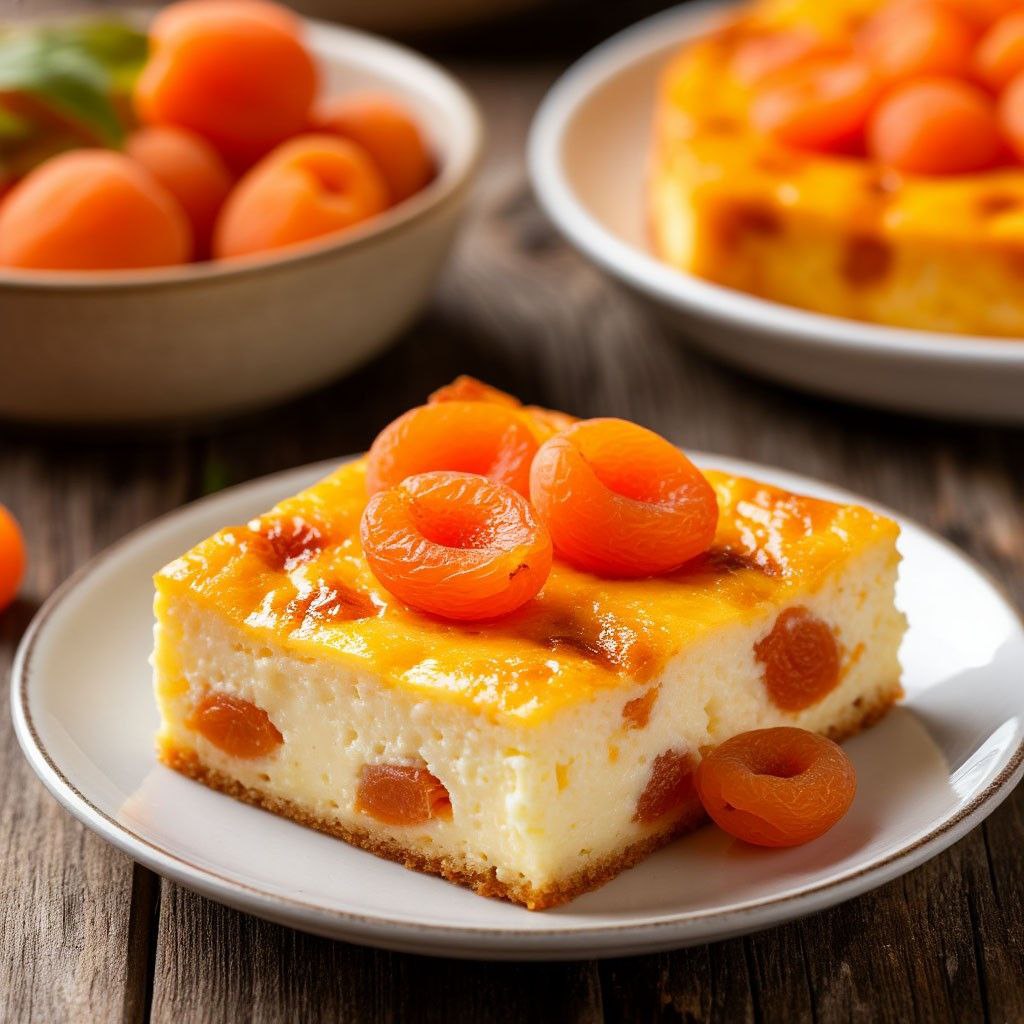 6․ Запекайте творожную запеканку с курагой примерно 40 минут при температуре 180 °С.